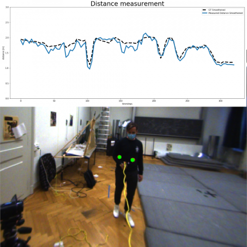 This week, the depth estimation of the human has been realized and verified. Thanks to the calibration shapes on the handle of the operator, an algorithm estimates the distance between the drone and the human. This information can then be used in a further step to properly scale the optical flow, obtaining an estimation of the relative velocity.
