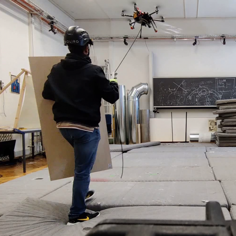 This week the team managed to show a first successful position tracking. Currently, the base station operator sends a target position to the drone which then guides the human to the desired position.